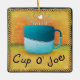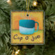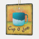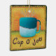 Esta vibrante design de café apresenta uma caneca de dois tons contra um fundo laranja e ouro em greve, acentuado por uma borda ousada de diamante preto e vermelho. . Qzik Art
