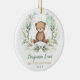 Este adorável ornamento cerâmico apresenta um doce ursinho de pelúcia segurando um belo balão verde de sábio adornado com elegante coroa de eucalipto. O design de trás dá a opção de adicionar a foto do seu bebê para tornar o ornamento ainda mais pessoal e especial!
