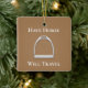 Este design tem um ferro-duro inglês com as palavras "Have Horse Will Viagem" para mostrar que você e seu cavalo (ou pônei) estão prontos para qualquer coisa.