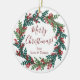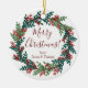 Elegante Red Green Christmas Wreath Cerâmica Ornament Um Enfeites de natal elegante que você pode personalizar para amigos e família na temporada de festas. Este é também um presente de anfitriã excelente se você comparecer a uma reunião durante os feriados de Natal.