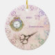 Ornamento De Cerâmica Tesoura Dourada Rosa Vintage