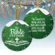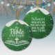 The Bible is our Compass Bible Verse Festive Ceramic Ornament with a Green sparkle stars glistening glow and a touch of white snow top capturing the holiday magic and joy of a religious Christian Christmas season. On the back, the sacred writing, Psalm 119:105 "Thy word is a lamp unto my feet, and a light unto my path". This verse compares the Bible to a lamp that illuminates the immediate steps ahead and a light that makes the overall path clear, all in customizable text, ready for you create your favorite devotional design hanging decorations. Order your Christs teachings testaments today and make your custom inspirational doctrine keepsakes extra special with passages of the word of God! 🎄⛪️