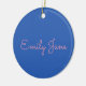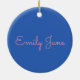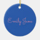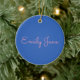Adicione um toque pessoal às suas decorações de férias com este adorno cerâmico elegante, com um nome personalizável, design, em um roteiro suave e moderno contra um fundo azul ousado. Perfeito por criar memórias duradouras, este ornamento faz uma manutenção significativa para a família, amigos, ou mesmo para você mesmo. Prendam-no na árvore, deem-no aos entes queridos, ou usem-no como uma etiqueta única para os presentes para tornar os feriados verdadeiramente especiais.