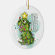 Ornamento cerâmico de Natal do Dinossauro de Árvore Traga muito mais alegria de Natal para sua árvore com um ornamento cerâmico personalizado. Adicione fotos da família, imagens e mensagens pessoais a ambos os lados deste ornamento. Um fio de ouro torna fácil pendurar esta fantástica marca de sempre.