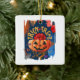 Ornamento De Cerâmica Trick ou Tratat - Jack-o-Lanterna com Rosa vermelh