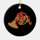 Este design tem uma trompa francesa envolvida em uma fita vermelha do Natal.