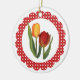 Este Ornamento de Tulips apresenta minha pintura a aquarela de arte digital de tulipas com borda vermelha de tecido.