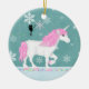 Um Unicórnio Branco e Rosa Bonito e uma Fada Silhueta caminhando por um floco de neve enrolado. Eles estão espalhando sua magia de férias. Personalize com um nome e ano. Alguns gráficos em artwork©delightful-doodles.com ~