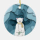 Adornado urso enfeite com uma ilustração de um pequeno urso polar com sua mãe protetora ao lado em um lindo fundo azul. Ótimo souvenir para o primeiro Natal do seu bebê. A imagem parece ter três dimensões, mas é apenas uma impressão. Ilustrado e projetado por Patricia Alvarez.