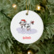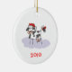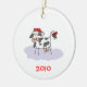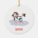 Enfeites de natal personalizáveis que apresentam uma vaca negra e branca vestindo um chapéu vermelho de Papai Noel. O ano de 2010 pode ser alterado para o ano que você gostaria de adicionar. Dê esses Enfeites de natal bonitos como presentes para aqueles que gostam de vacas.