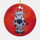 Ornamento De Cerâmica Vaca festiva em Santa Chapéu em Vermelho