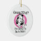 Ornamento de design com estilo retrô perfeito para a futura mãe que quer anunciar que há um bebê a caminho! Esse adorável ornamento de design com estilo retrô apresenta uma fêmea em um telefone com texto que diz "Adivinha o quê"? Vou ser mãe!