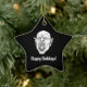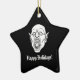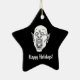 Adicione um charme escuro ao seu decoro natalício com este Enfeites de natal cerâmico em forma de estrela, com um desenho de linha assombrosa de um vampiro a barrar as presas contra fundo preto, juntamente com as palavras "Feriados Felizes" na frente. No verso, o texto sinistro "Denn die Todten reiten schnell" (Para o viagem de morto fast) acrescenta uma "nod" aos filmes clássicos de terror e Dracula lore, fazer-o como uma peça perfeita para aqueles que apreciam a estética assustadora e gótico. Ideal como um presente de Natal único para a pessoa certa, este ornamento combina alegria de férias com uma borda sobrenatural arrepiante, perfeita para fãs do lado mais negro da temporada!