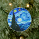 Ornamento com a pintura a óleo de Vincent van Gogh na Noite Estrelada (1889). Inspirada pela sua estadia num asilo, a arte representa uma aldeia debaixo de um céu noturno de lua azul e amarela e estrelas. Um presente de excelente para fãs do Poste-impressionismo e da arte holandesa.