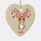 Veado de Natal com bolas vermelhas no ornamento de fundo bege. O texto do nó pode ser personalizado.