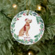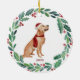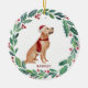 Decorre sua árvore ou dê um presente especial nesta temporada de festas com este elegante ouro de Feliz Natal num enfeites de natal de coroa, e compaixão. Este enfeites de natal recuperador de ouros apresenta um cão aquarela em uma coroa verde e vermelha, com sombra e bagas. Personalize com o nome na frente, ano atrás. Este enfeites de natal de recuperador de ouros será um favorito entre amantes de recuperadores de ouros, amantes de cachorros e amantes de os animais. Visite nossa coleção para combinar cartões de natal de recuperação de ouros, decoração doméstica e presentes. COPYRIGHT © 2020 Judy Burrows, Black Dog Art - Todos Os Direitos Reservados. Ornamento cerâmico de Ouro de Férias de Pet Personalizadas de Cão de Natal