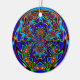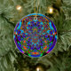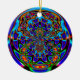 Trabalho de arte digital em um padrão esférico com um arco-íris de cores brilhantes.