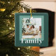 Celebre o calor da estação com este Enfeites de natal moderno e verde personalizado. Apresentando uma foto de família apreciada e uma tipografia branca e clara "Família", este elegante ornamento cerâmico adiciona um toque significativo ao seu decoro de férias. Um presente de eterno para pais, avós, recém-casados, ou sua própria árvore, é a maneira perfeita de capturar memórias ano após ano. Impresso em cerâmica de alta qualidade com um design quadrado elegante e uma corda de ouro para pendurar.
