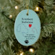 Sendo um técnico veterinário por muitos anos, sei como meus pacientes tocaram minha vida de tantas maneiras. Apesar de ser um técnico frequentemente ter seus altos e baixos, uma coisa é sempre consistente, você coloca seu coração em seu trabalho todos os dias. Mostre seu amor pela profissão com este ornamento totalmente personalizável. A frente apresenta um simples design gráfico de um cão e de um gato, uma pata preta, um coração vermelho e o texto "técnico veterinário" e "Meus pacientes deixam pegadas no meu coração" em uma fonte preta atraente. Personalize-o adicionando seu nome ou sua clínica, abrigo ou nome de resgate. O verso apresenta o texto "Kathleen Anne", "WillowHawkAcres Veterinary Clinic" "2015" e uma pata preta.