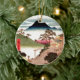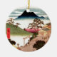 Ilustração do woodblock do vintage da vila japonesa com a montanha no fundo. Vida japonesa rural do vintage.