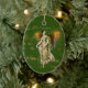Belo ornamento para amantes de fadas. Possui fada de vintage com asas de borboleta âmbar castanha e ouro sobre fundo de efêmera de vintagem verde e dourada. Crie uma manutenção personalizada com texto adicionado na parte traseira.