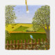 Um ornamento com uma bela imagem de uma cena natural: Um pássaro sentado numa cerca de uma intempérie, flores silvestres a crescer à volta da cerca, um agricultor num trator, a trabalhar na sua terra, árvores com folhas e terra de cultivo com várias cores. A imagem e o texto podem ser personalizados. Você também tem a opção de excluir o texto. Arte original por W.B.