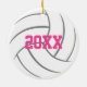 Este ornamento legal de vôlei apresenta um gráfico de vôlei simples e minimalista com nome de jogador personalizável e número de camisa na frente e no ano atrás - a cor do texto é rosa-quente, mas pode ser personalizada - por katz_d_zynes
