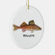 O walleye é descrito neste ornamento da pesca de água doce dos grandes lagos. O walleye é uma dos peixes de água doce os mais populares dos grandes lagos e de outras vias navegáveis de America do Norte. Outros nomes para este gamefish popular incluem o pique e a vara de pique parede-eyed.
