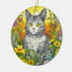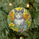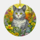 Ornamento De Cerâmica Whimsical Cat and Flowers