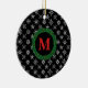 Enfeites de natal com flocos de neve brancos e fundo preto. Uma coroa verde com o seu monograma inicial na dentro do lado frontal. A parte de trás tem o seu nome. Faça as alterações quando Personalizar este modelo. Para fazer mais alterações, clique em Personalizar ainda mais. Poupe no estoque impresso de um lado. Entre em contato com Sandy em admin@giftsyoutreasure.com para obter ajuda ou um produto personalizado para você.
