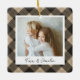 Um adorável ornamento fotográfico de dupla face exibindo uma foto favorita em cada lado, em um fundo de xadrez de búfalo preto e brando. Personalize com uma legenda personalizada na frente em letra manuscrita e adicione o ano no verso.
