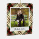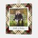 Um adorável ornamento fotográfico de dupla face exibindo uma foto favorita em cada lado, em um fundo festivo vermelho e xadrez verde. Personalize com uma legenda personalizada na frente em letra manuscrita e adicione o ano no verso.