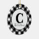 Este ornamento de estilo de fazenda apresenta um clássico design de verificação de búfalos preto e branco personalizado com sobrenome inicial e inicial na frente. Adicione a foto da sua família à parte de trás do ornamento.