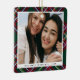 Primeiro Natal junto com o ornamento fotográfico com um fundo verde e xadrez vermelha.