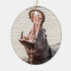 ornamento decorativo cerâmico com imagem de hipopótamo num lago boiando com a boca aberta em ambos os lados.