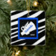 Ornamento De Cerâmica Zebra Print Blue Cheer Megaphone Ornament