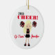 Ornamento de Cheerleader Louro Cinto Vermelho e Pr