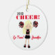 Enfeites de natal Cheerleader Louro Vermelho e Negro. Este ornamento de feriado redondo em vermelho e preto é fácil de personalizar com seu nome, data e nome de mascote. Visite nosso compro para ver este ornamento em uma variedade de opções de cores escolares. Este ornamento é um doce presente de feriado para o cheerleader na sua vida!