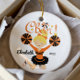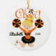 Ornamento de Cheerleader Louro Torto e Torre Laranja e Preto. Fácil de personalizar com seu nome e data. Visite nosso compro para ver este ornamento em uma grande variedade de cores e cores de cabelo escolares