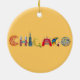 As pinturas originais da aguarela por Anne Ormsby das cenas de Chicago fazem as letras do nome da cidade neste ornamento do divertimento.