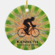 Ornamento de Ciclo de andando de bicicleta em um fundo de explosão de inicialização. Todo texto personalizável, frente e verso!