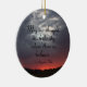 A mensagem neste adorável ornamento é uma citação de Arapaho que diz, "Que nossos pensamentos cheguem ao céu onde há santidade." Este ornamento mostra um belo pôr do sol da Califórnia com uma silhueta das colinas, o brilho vermelho do horizonte e nuvens de tempestade escura e leve sobre a superfície.