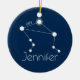 Ornamento Personalizado de Constelação de Libra Zodiac. Apresentando a constelação de Libra em um fundo de Marinho, este ornamento personalizado de Libra faz uma adição perfeita à sua árvore de Natal. Libra é o Sétimo Sinal do Zodíaco e Inclui todos os Nasceres de 23 de setembro a 22 de outubro. O Símbolo de Libra é The Scales. Os Traços de Personalidade de Libra são Românticos, Sociáveis, Graciosos, Diplomáticos e Indecisivos. O Birthstone de Libra é o Planeta Governante de Opal e de Libra é Vênus. A cor e o texto de fundo podem ser personalizados