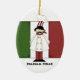 Este é um chef italiano com a bandeira italiana na frente. Nas costas, o chapéu do Chef também com a bandeira italiana. Você pode personalizar o texto com seu próprio ditado ou mantê-lo igual. Este ornamento é excelente para uma decoração na cozinha. Tantas pessoas coletam decor de chef e parecem excelente adicionado à sua coleção. Nota: Trabalho de arte por Clipart4Resale