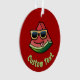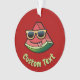 Bela caricatura. Uma fatia de melancia com óculos de sol. Cor de fundo personalizada. Texto personalizado de ambos os lados.