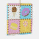 Satisfaça o seu doce dente com este padrão colorido que apresenta gostosões como um cone de sorvete de chocolate, uma rosquinha de chocolate fosco púrpura, um macarão amarelo-limão, e um pirulito rodoso, rosa e branco, separado por pedaços de chocolate e cercado por aspersão arco-íris em quatro quadrados brilhantemente abarrotados.