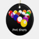 Ornamento de Design de Billiard Balls com texto personalizável. A cor de fundo pode ser alterada (personalize-edit-background).
