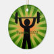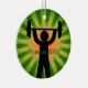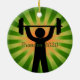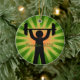 Malhação de Treinamento de Peso Ornamento Cerâmico em um fundo de starburst verde e laranja com texto personalizável.