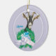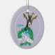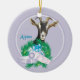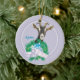 Ornamentos de Caprinos Alpinos de Férias com Flair Tropical. Lavanda com pacotes de presentes pastel e galhos de feriados com um ornamento de lavanda bonito. Cada design apresenta uma raça de cabra e atrás uma Terra de Férias Tropicais.