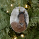 Este lindo garanhão andaluz está em pé na neve suavemente caindo em frente a uma árvore em Longmont, Colorado. Imagem de Carol Walker neste ornamento de férias.